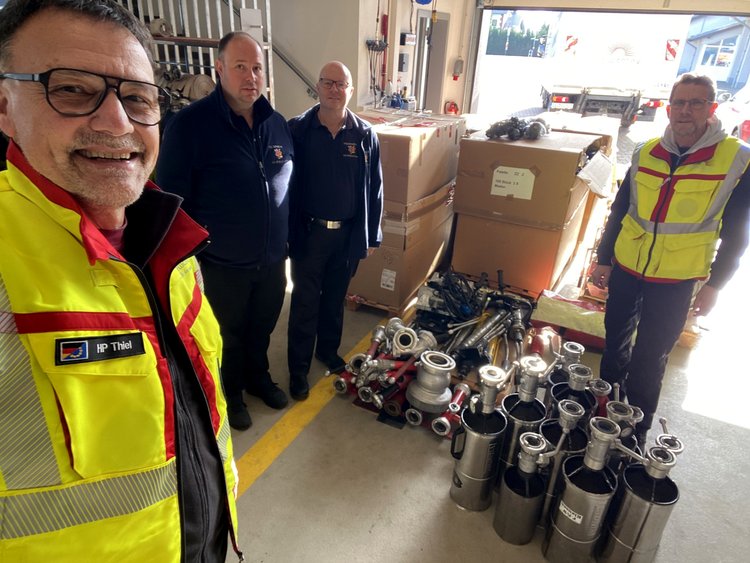 In der Zentralen Feuerwehrwerkstatt der Verbandsgemeinde Wittlich-Land in Landscheid konnten Klaus und HP mehrere Paletten mit Masken für den Atemschutz, Schutzkleidung sowie…