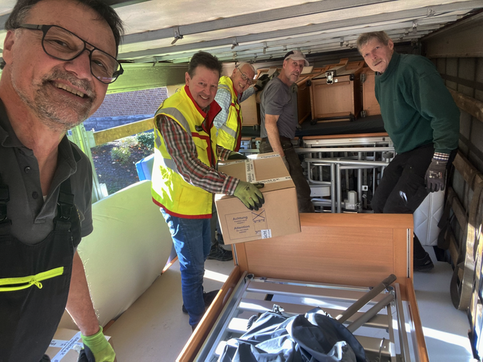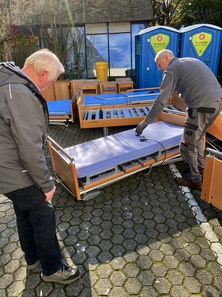 Die Stiftung stellte uns die letzten 40 von insgesamt 250 ausgetauschten Pflegebetten zur Verfügung – komplett mit Matratzen und Nachtschränkchen. Ergänzt wurde die wertvolle Ladung durch gut erhaltene Pflege- und Klapprollstühle, Rollatoren vom Trierer Sanitätshaus Kersting, neun Paletten klinisches Verbrauchsmaterial sowie einige gespendete Fahrräder.
