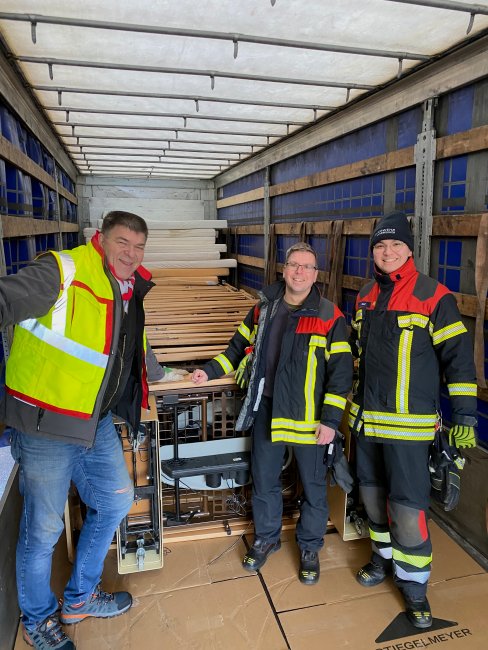 Am ersten Aktionstag wurden 22 Pflegebetten, Nachtschränkchen und Matratzen verladen, die vom Pflegeheim für die humanitäre Hilfe gespendet wurden. Unterstützt wurde die Aktion durch die Feuerwehr Alt-Saarbrücken, Ehrenamtliche aus der deutsch-ukrainischen Gemeinschaft sowie Mitarbeitende weiterer Pflegeeinrichtungen und eines Krankenhauses. Dank dieser guten Zusammenarbeit konnte ein halber 40-Tonner im Innenstadtbereich zügig beladen und nach Gerolstein überführt werden.