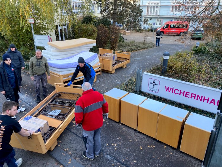 Mit großem ehrenamtlichem Engagement startete am Pflegeheim Wichern Haus in Saarbrücken eine zweitägige Hilfsaktion für die Ukraine. Unter der Koordination des gemeinnützigen Vereins Eifellicht e.V. aus Gerolstein beteiligten sich rund 20 freiwillige Helferinnen und Helfer an der Verladung dringend benötigter Hilfsgüter.
